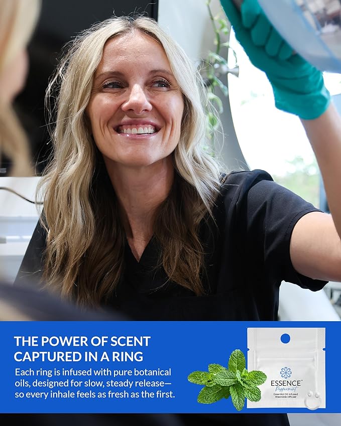 - INFUSED WITH PURE ESSENTIAL OILS - Each Essence nose diffuser ring is infused with high-quality essential oils using advanced scent-retention tech, giving you therapeutic fragrance all day.