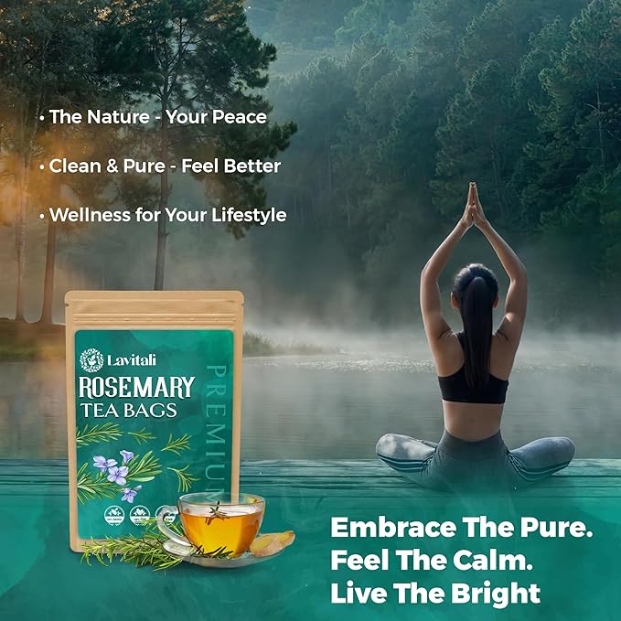 Lavitali, Rosemary Leaves Tea Bags | 120 bags, 100% Pure Herbal Tea | Caffeine-Free, No Sugar, Eco-Friendly Filter Bags | Daily Natural Botanical, Hot or Iced Herbal Infusion