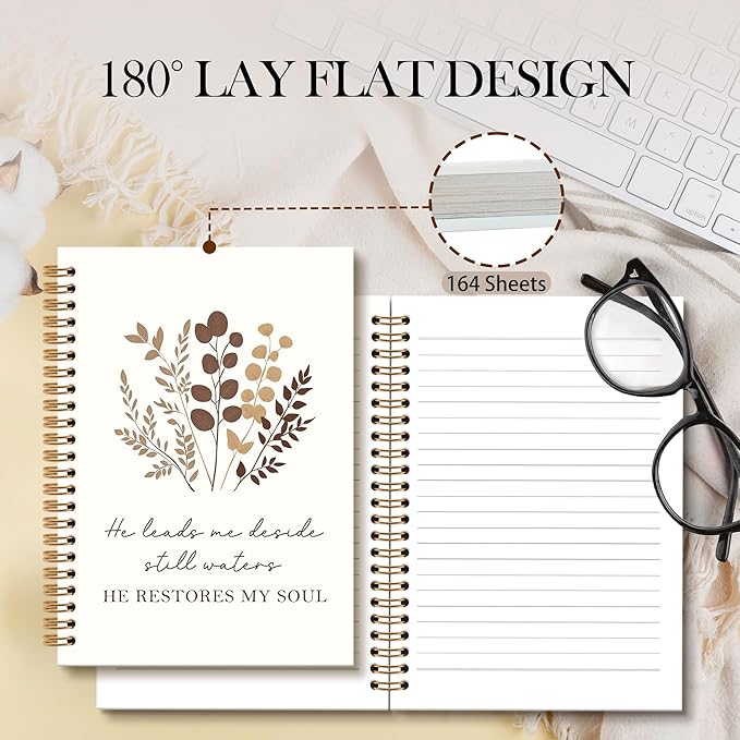 - Spiral Bound Notebook:This journal notebook features a spiral design that allows it to open completely 180°flat for easy writing. It also folds seamlessly 360°without creasing. The pages are easy to tear and don't fall apart easily