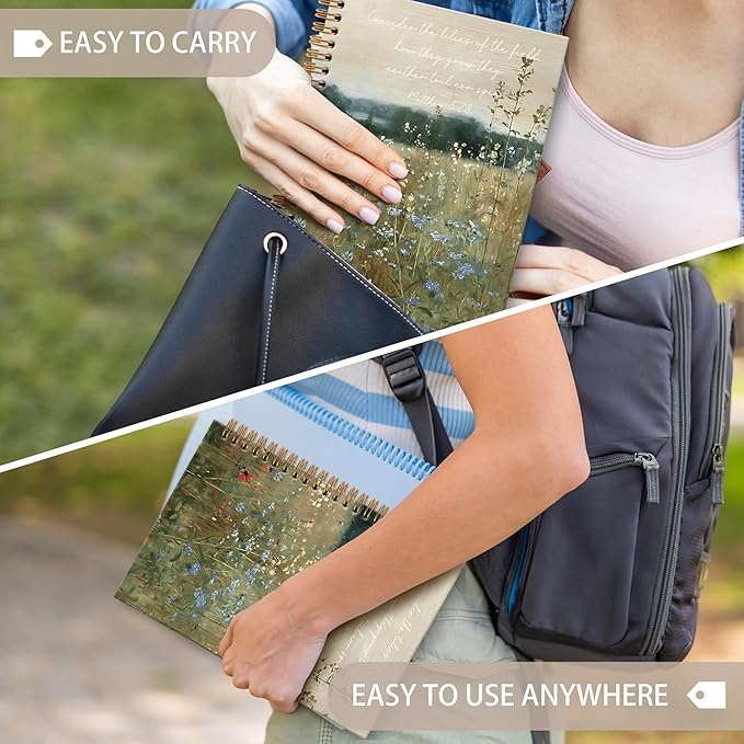 Bible Wildflowers Notebook Journal - Vintage Flowers Spiral Notebook, Floral Journal, Landscape Christian Notebooks Gifts for Women, Cottagecore Flowers School Office Supplies, 6x8.2In
