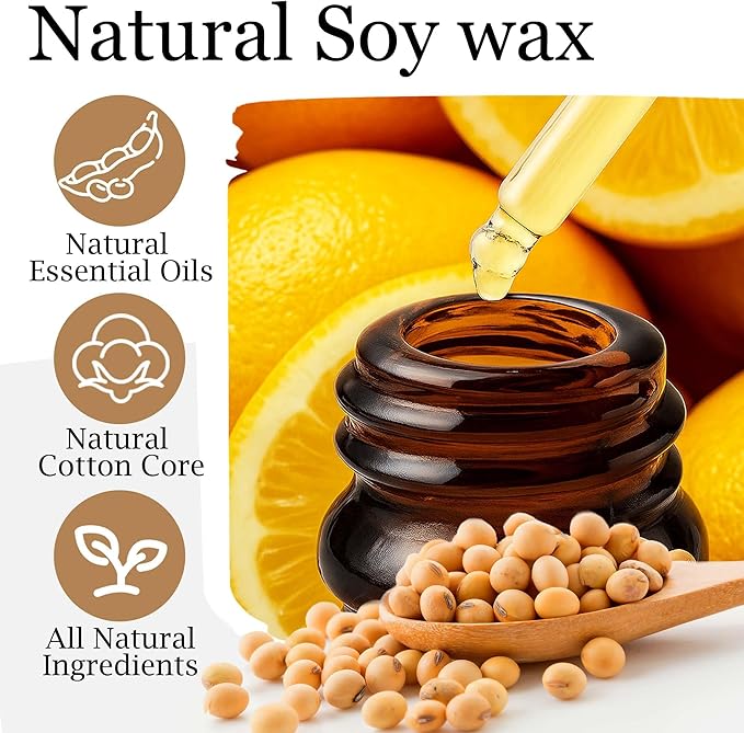 - πΏ CLEAN BURN WITH NATURAL SOY WAX: Crafted with 100% natural soy wax and lead-free cotton wick for a clean, long-lasting burn - no black smoke, just pure relaxation in every light.