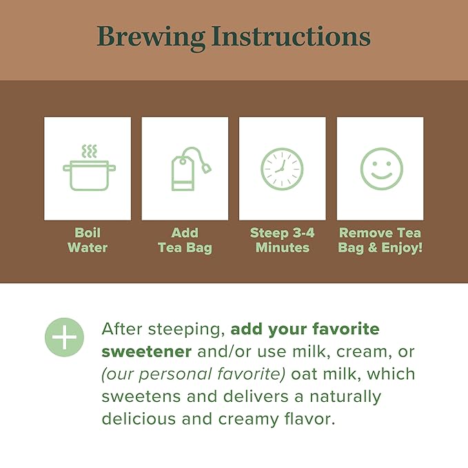 - ECO-FRIENDLY & USA MADE Contains 25 biodegradable, stringless, and tagless tea bags in a resealable pouch. USDA Organic certified and crafted in small batches in the USA for maximum freshness and purity. Our Product Commitments: USDA Organic, Fair Trade, Plant Based, Vegan, Non-GMO, Made in USA.