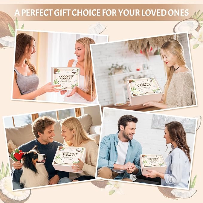 - Sweet Coconut Self Care Kit: Everyone knows that coconut has so many benefits for our skin and body. Our Coconut spa gift baskets for women is made from the natural ingredients such as Coconut Oil and Vitamin E, infused with variety of plants extracts that helps to nourish the skin, soften dry skin and lock in moisture, suitable for all skin types. Scented with sweet coconut, the delightful tropical scent evokes images of sandy beaches and sunshine, a perfect gift for best friend birthday gifts