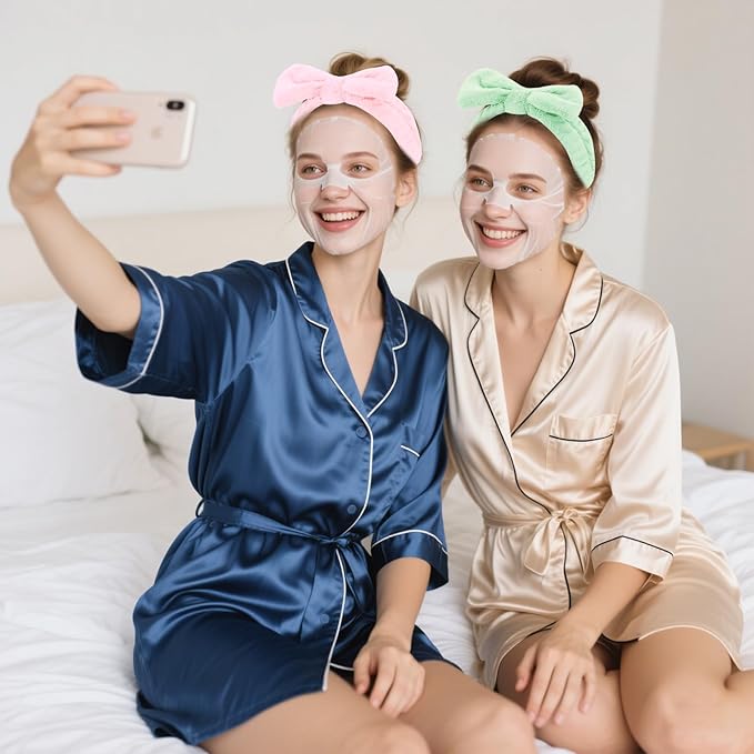 - slip easily, so it is applicable for both adults and children! Wide Application:These cute bow headbands are perfect for a wide range of occasions, including spa day, yoga session, sleepover party, bridal shower or your daily beauty regimen. Use the skin care headband during facial treatments, makeup applications, or whenever you want to keep your hair clean and tidy.