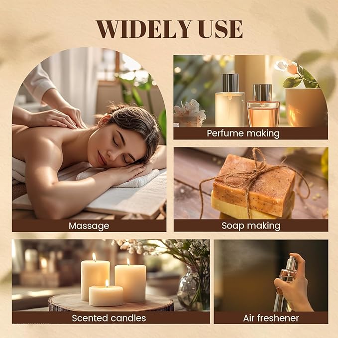 - Versatile & Multi-Use: Our aromatherapy essential oils are perfect for use in diffusers, perfume making, candle crafting, bath bombs, DIY cleaning solutions, laundry, massage, and more. Enhance every room in your home — from the bedroom to the study, bathroom to living room — with their delightful, natural fragrances.