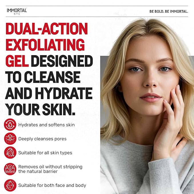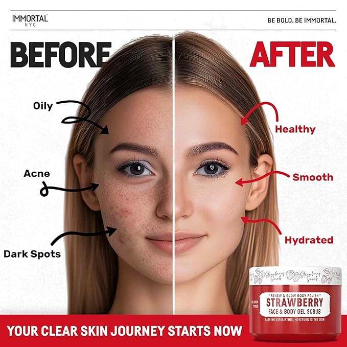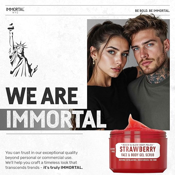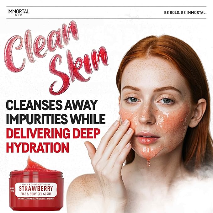 Immortal NYC Strawberry Crush Face & Body Scrub Mask Gel- Moisturizing and Exfoliating Body, Face, Hand, Foot Scrub - Fights Acne, Fine Lines & Wrinkles, Great Gifts For Women & Men - 10 oz