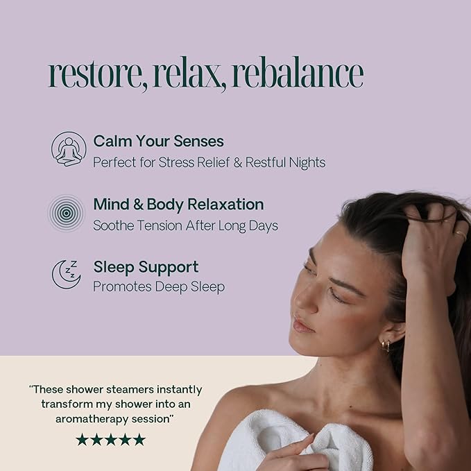 - BRING THE SPA HOME: Place one steamer on the shower floor and let the scent of lavender fill the room, transforming your shower into a serene self-care ritual. Perfect for natural stress relief, or as a thoughtful Christmas gift for Mom, teacher appreciation, or a self-care birthday present.