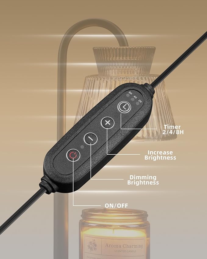 - Dimmable Lighting and Timer:Lisunar candle lamp offers adjustable brightness (control wax melt speed) and a preset timer (2/4/8 hours). Easily personalize your space: dim the lights for a subtle scent or brighten them for stronger fragrance. Set the timer to match your routine—whether for bedtime, work, or relaxation—and enjoy peaceful sleep with gentle, all-night aroma.