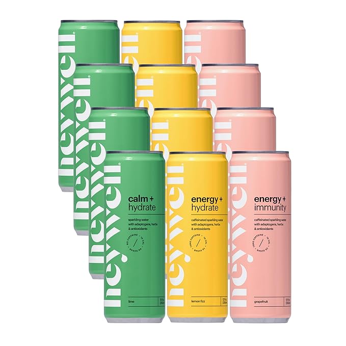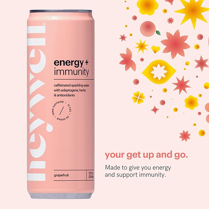 - VARIETY PACK – Lime, Lemon Fizz & Grapefruit Flavor This Heywell variety pack includes two refreshing flavors designed to support energy, focus, immunity, and stress relief. Lightly sparkling with just 10 calories and 1g sugar, these adaptogen drinks are made with organic ingredients, electrolytes, and are Non-GMO, Vegan, Gluten Free, and alcohol-free—perfect as a functional mocktail or daily boost.