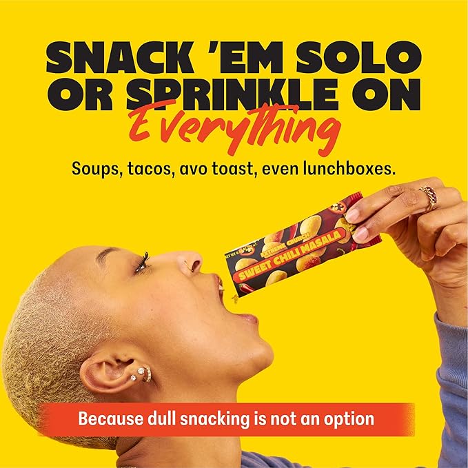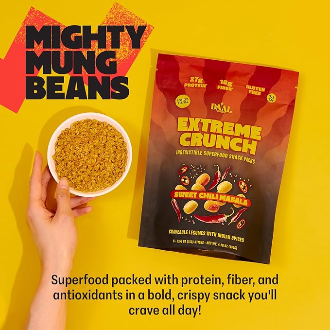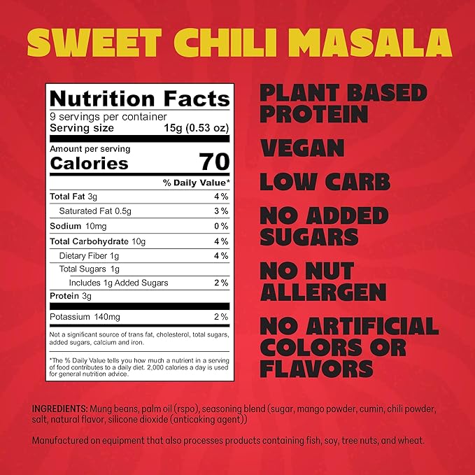 - BOLD SWEET CHILI MASALA FUSION FLAVOR: Discover the addictive crunch of protein-rich mung beans seasoned with a handcrafted mix of Indian spices and a touch of American-style brown sugar. This fusion delivers a savory-sweet flavor profile with a satisfying kick—crafted to excite your taste buds and elevate your snack game.