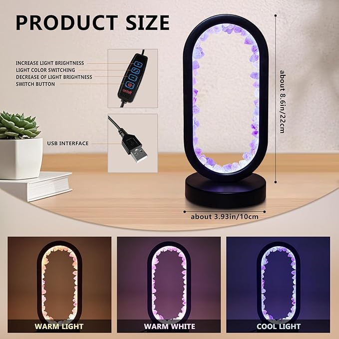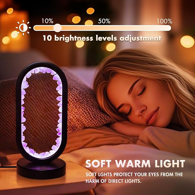 - Natural Amethyst & Lighting: Combines natural amethyst stones with lighting, offering both illumination and decoration. It helps relieve stress, improve sleep, and enhance focus and mental peace