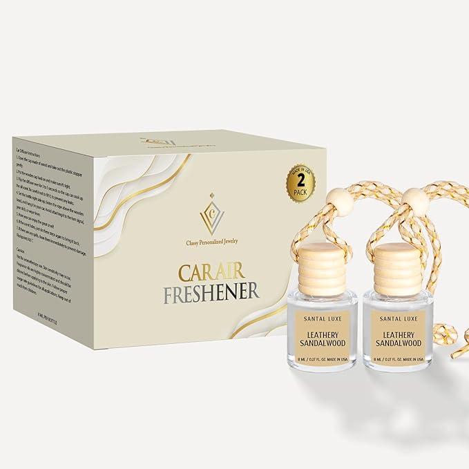 Car Air Freshener Hanging 2 Pack, Leathery Sandalwood Essential Oil Diffuser, Car Air Fresheners for Women, 45+ days Long Lasting Air Freshener for C ar, C ar accessories, Made in USA