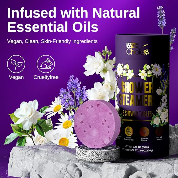 W&E Choice Shower Steamers Aromatherapy 8 Pcs- Shower Bombs with Natural Essential Oils for Daily Relaxation & Stress Relief, Birthday Gifts for Women & Men, Mom, Teen
