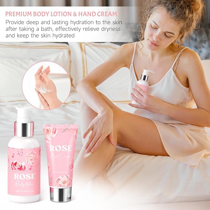 - Natural Self-Care Package for Women: Our rose spa gift sets for women is made from the natural ingredients such as Rose Oil and Vitamin E, infused with variety of plants extracts that helps to nourish the skin, suitable for all skin types. Make the perfect get well soon gifts for women, care package for women, birthday gifts for women, thank you gifts for women, relaxation gifts for women, spa gift sets for women, bath gift set for women