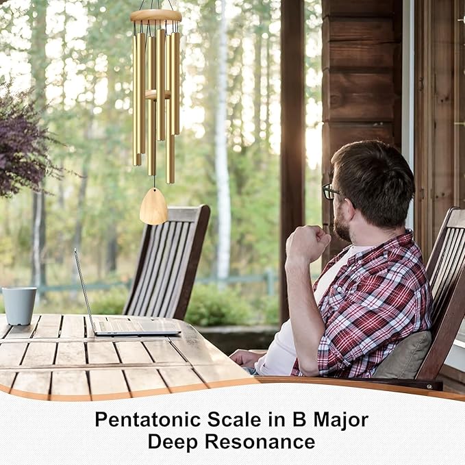 Large Aluminium Wind Chimes 37 Inches to Create a Zen Atmosphere Suitable for Outdoor, Garden, Patio Decoration. Classic Wind Chimes with Wind Catcher as a Gift for Unisex(Light Golden)