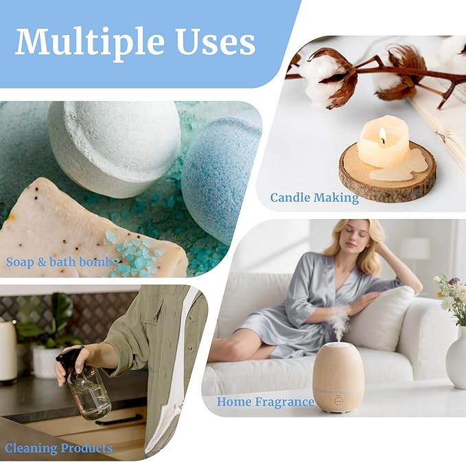 - Uses Included: As diffuser oils scents for home office, candle fragrance oil for soy candles, soap making scents, slime scents, air freshener spray, our fragrance oils also work well in many essential DIYs such as bath salt, body lotion, reed diffuser, perfumes