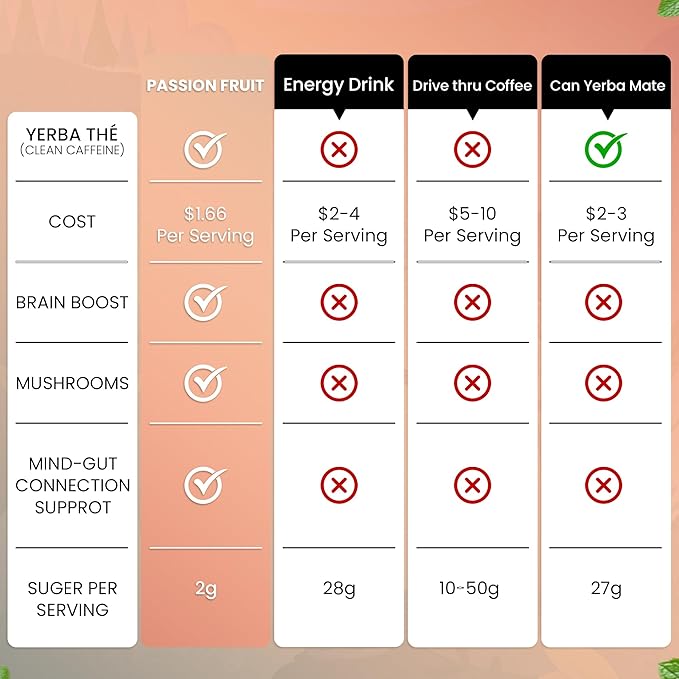 - Low Sugar, High Power Clean Energy Drink: Stay energized without the crash or guilt – our yerba mate low sugar formula is crafted for clean living. As a top choice in clean energy drinks, this yerba energy drink boosts vitality naturally. Trusted by those who want a smarter yerba mate drink that doubles as a brain fog supplement and gut health supporter.