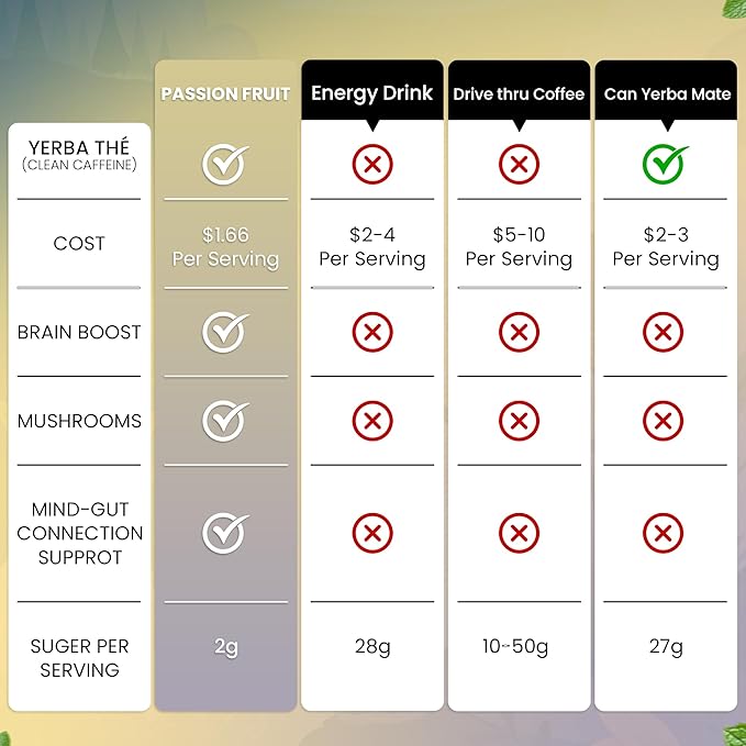 - Low Sugar, High Power Clean Energy Drink: Stay energized without the crash or guilt – our yerba mate low sugar formula is crafted for clean living. As a top choice in clean energy drinks, this yerba energy drink boosts vitality naturally. Trusted by those who want a smarter yerba mate drink that doubles as a brain fog supplement and gut health supporter.