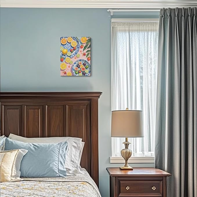 Italy Lemon Wall Art, Citrus Fruit Botanical Still Life Oil Painting Canvas Framed Prints Modern Decorations, Summer Aesthetic Theme Poster for Living Room Dining room Entryway Farmhouse