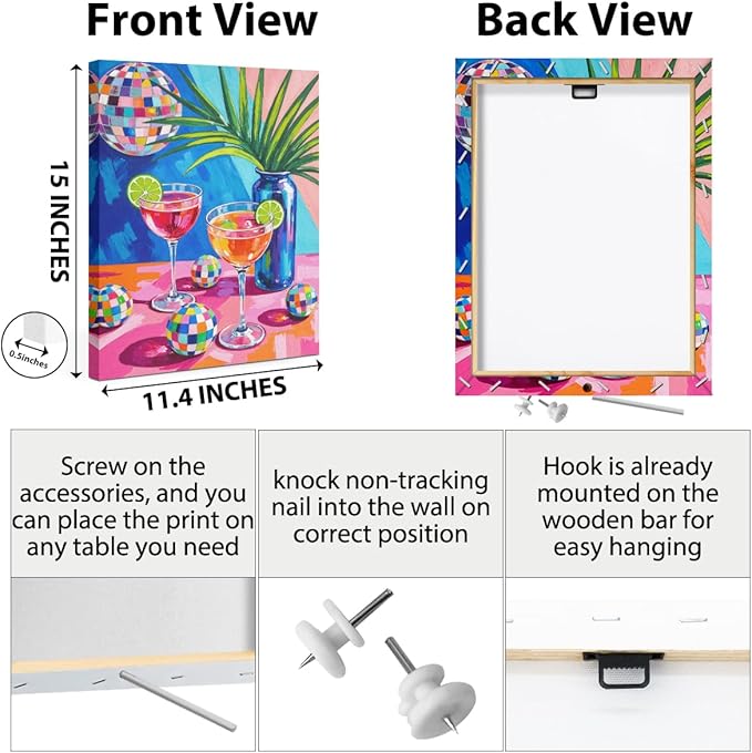 Disco Cocktail Print Wall Art, Retro Disco Ball Maximalist Canvas Framed Prints Modern Decorations, Funky Poster for Bar Cart Decor Living Room Entryway Bedroom Aesthetic