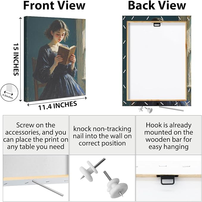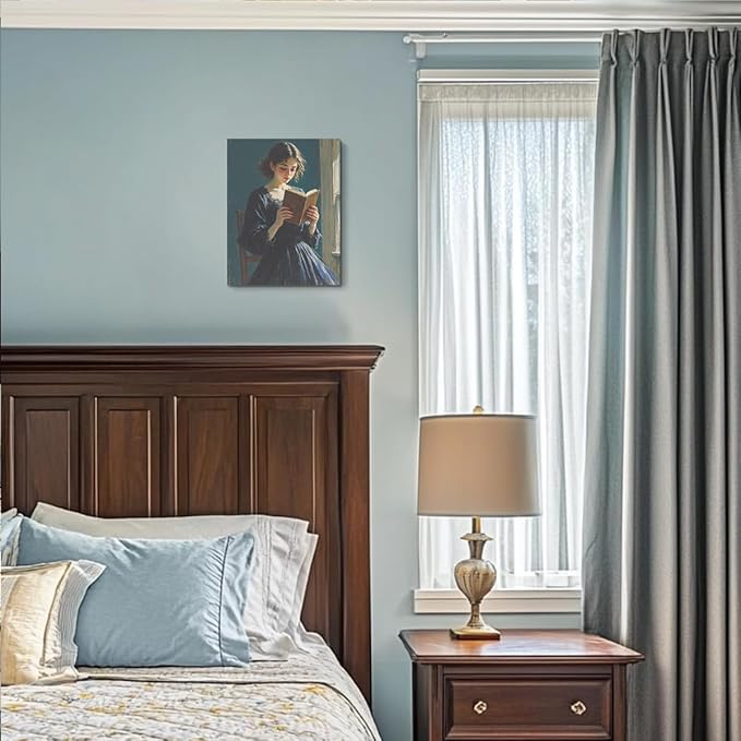 Classical Reading Woman Portrait Wall Art, Renaissance Style Vintage Oil Painting Canvas Framed Prints Decor, Retro Poster for Library Bedroom Book Shelf Living Room Entryway Aesthetic.