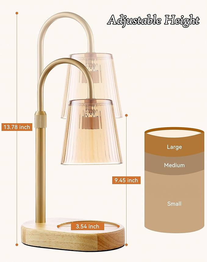 Adjustable Candle Warmer Lamp with Timer - Electric Light Wax Warming Dimmable Flameless Top Melter Heater Melting Heating Height Small Jar Candles Gifts Women Mom Birthday Home Desk Modern Decor