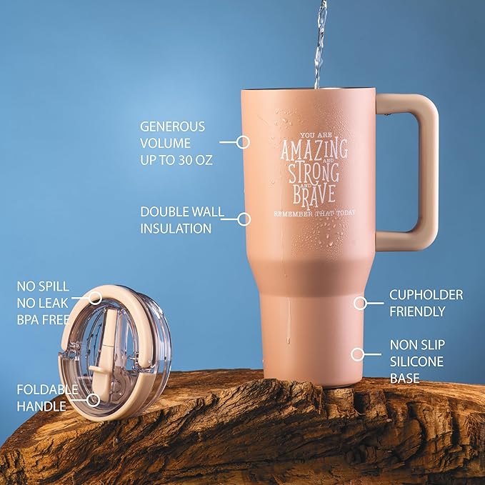 DIVERSEBEE 30 oz Insulated Stainless Steel Tumbler with Lid, Inspirational Birthday Thank You Gifts for Women, Mom, Wife, Girlfriend, Teacher, Her, Nurses, Best Friend, Travel Mug (Mocha)