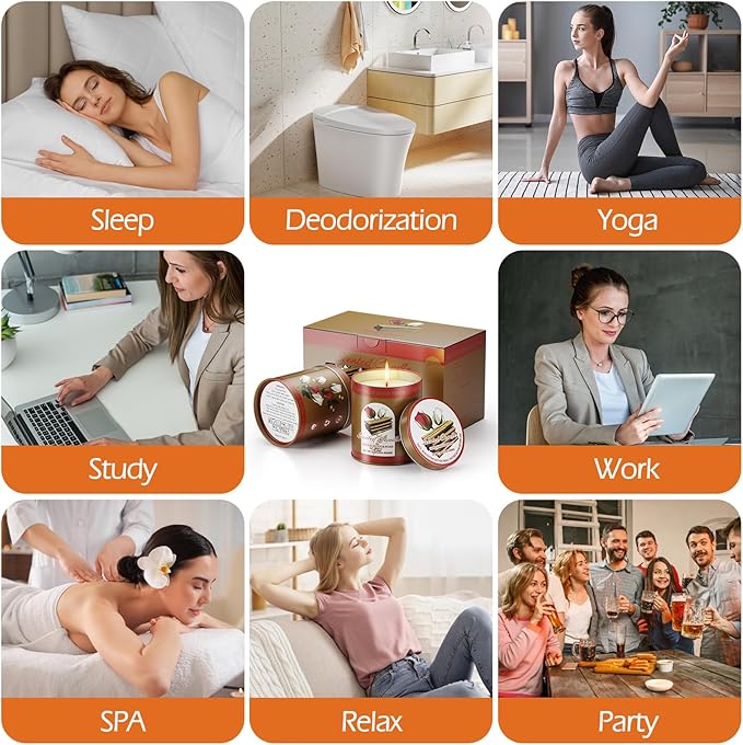 - 【Strong fragrance & Safe】 Made from natural soy wax with a smoke-free, clean burn. The vibrant, sealed tin packaging ensures safety and freshness. Free from harmful chemicals, these candles are a sustainable choice for eco-conscious buyers seeking a toxin-free home fragrance.