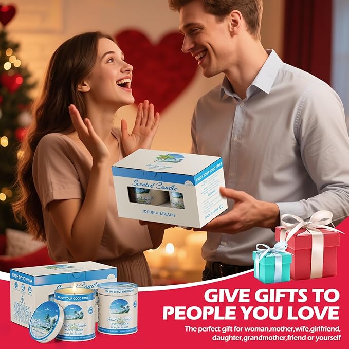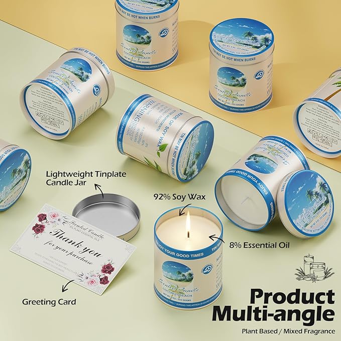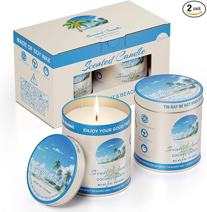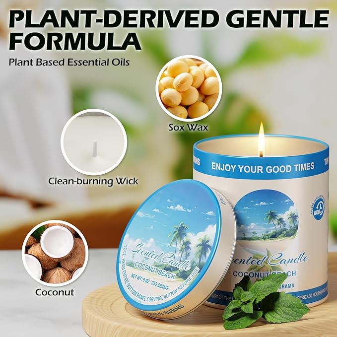 - 【Premium Coconut Beach Scented Soy Wax Candles】 Indulge in the tropical paradise with our Coconut Beach Scented Soy Wax Candles. Made from natural soy wax and infused with 8% essential oils, these candles deliver a high-concentration fragrance that fills any room with a refreshing, beachy aroma. Perfect for creating a relaxing atmosphere during meditation, yoga, or spa sessions, these aromatherapy candles are ideal for stress relief and unwinding after a long day. Each candle burns clean and smokeless, ensuring a safe and enjoyable experience.