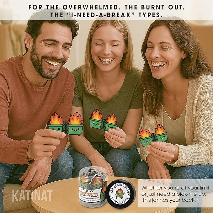 - 🔥 Your Daily Affirmation Jar for Hot Mess Moments: This isn’t just a quirky jar - it’s a daily survival kit. Packed with 60 dumpster-shaped cards, each one offers a hilarious, relatable reminder that you're not alone when everything feels like it’s on fire.