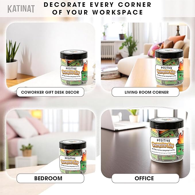 Emotional Supports Dumpster Fire Jar, 60 Positive Affirmation Cards, Dumpster Fire Desk Accessories, Relaxation Gifts, Coworker Gifts for Women, Great Gift for Boss, Teacher, Friends