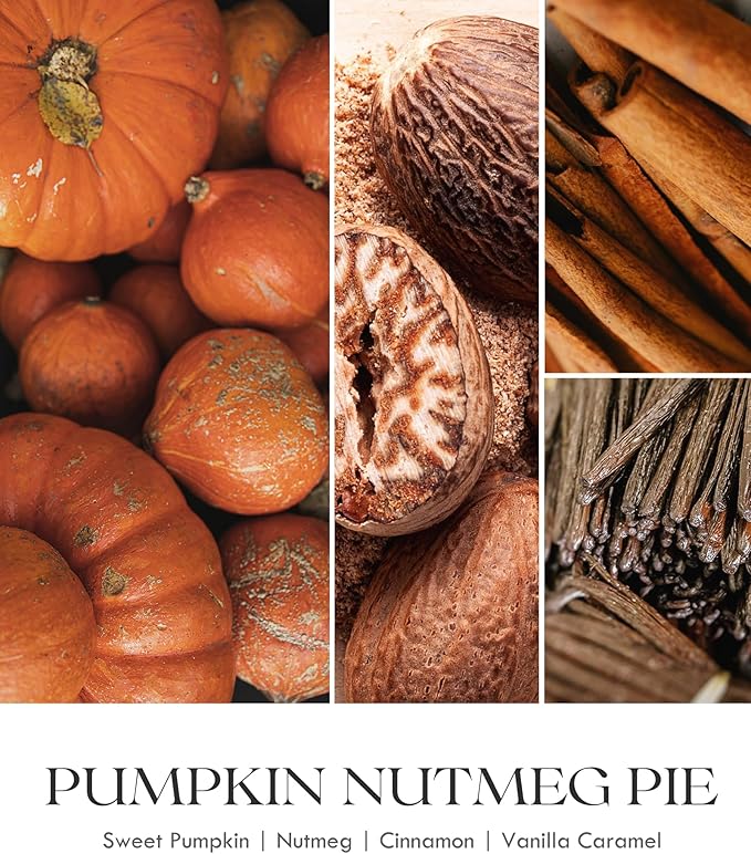 - HIGHLY SCENTED NUTMEG BEANS CANDLE: Envelop your home in the luxurious scent of autumn with this crystal candle. Top notes of sweet pumpkin and warm nutmeg blend with rich cinnamon, toasted sugar, and creamy vanilla for an indulgent pumpkin-spice fragrance. A buttery vanilla caramel base adds a decadent, cozy finish. This AOOVOO scented candles Perfect for crisp fall evenings and holiday gatherings