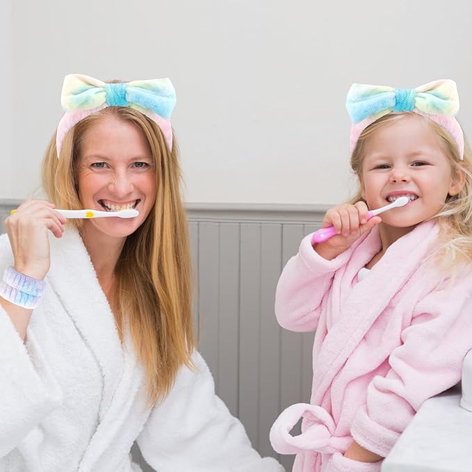 VELSCRUN Spa Headband, Makeup Face Wash Skincare Headbands, 6 Pcs Light Colorful Sponge Bow Tie Get Ready HairBand Facial Wristband Set, Stuff for Teen Girls Women Trendy Fashion Hair Accessories