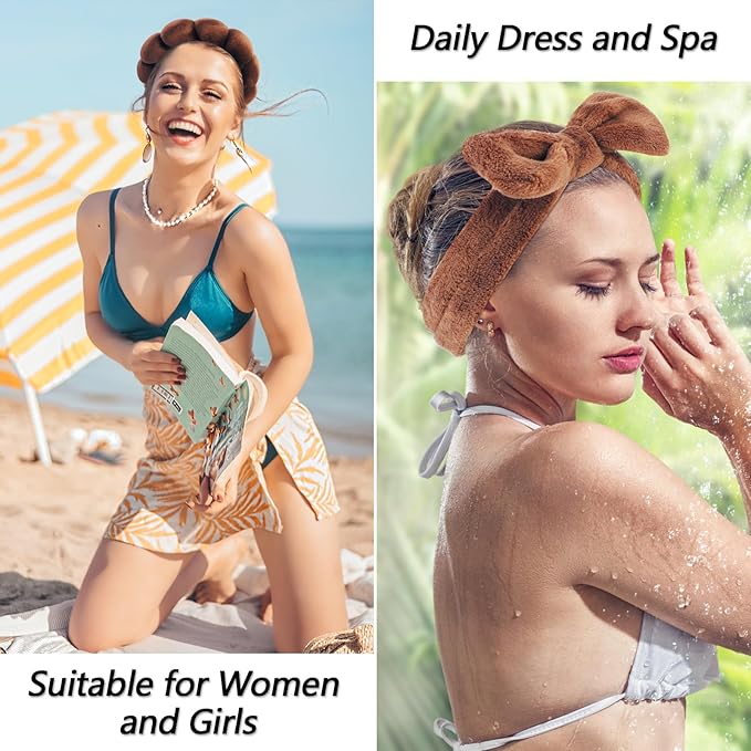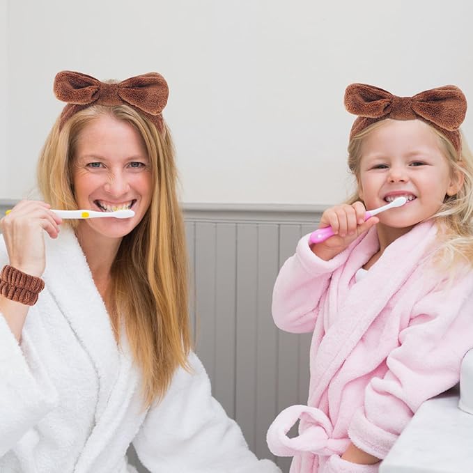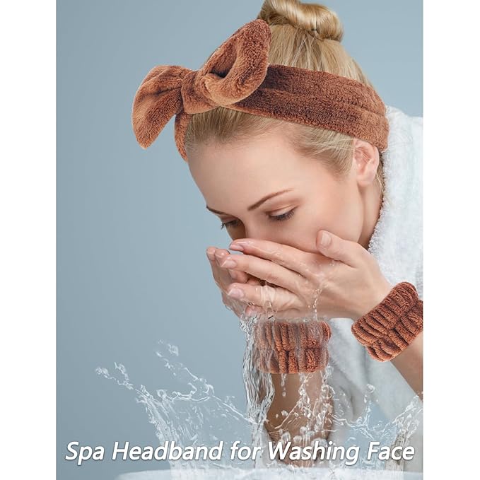 VELSCRUN Spa Headband, Makeup Face Wash Skincare Headbands, 6 Pcs Coffee Color Sponge Bow Tie Get Ready HairBand Facial Wristband Set, Stuff for Teen Girls Women Trendy Fashion Hair Accessories