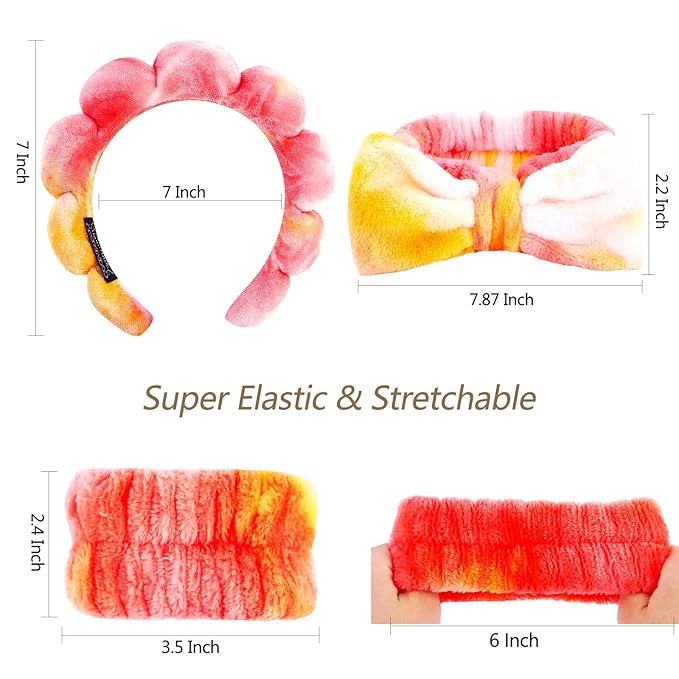 - What you get: The package has four wrist bands, a spa sponge headband, and a bow shape on the top of the spa headband, which makes your face wash easier and simpler