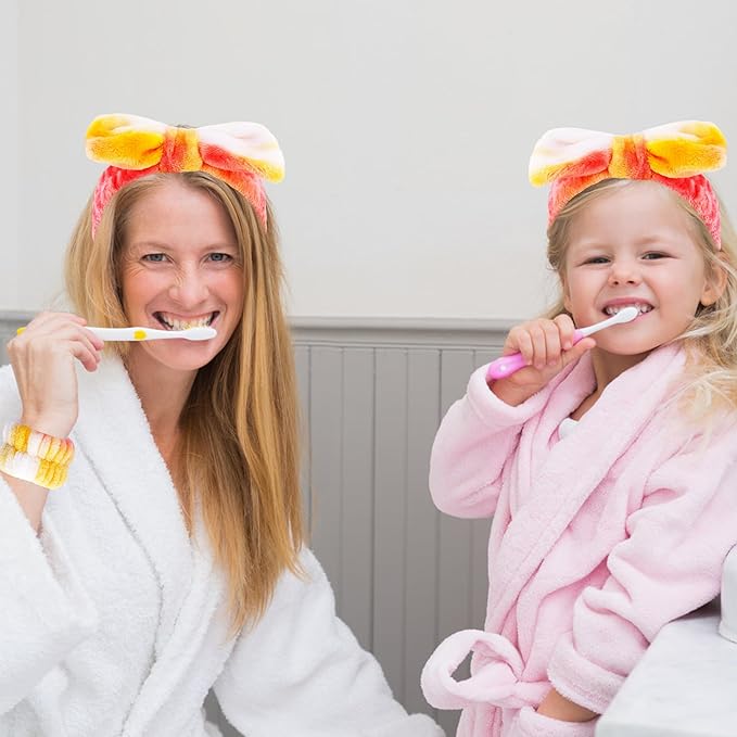 VELSCRUN Spa Headband, Makeup Face Wash Skincare Headbands, 6 Pcs Orange Sponge Bow Tie Get Ready HairBand Facial Wristband Set, Stuff for Teen Girls Women Trendy Fashion Hair Accessories