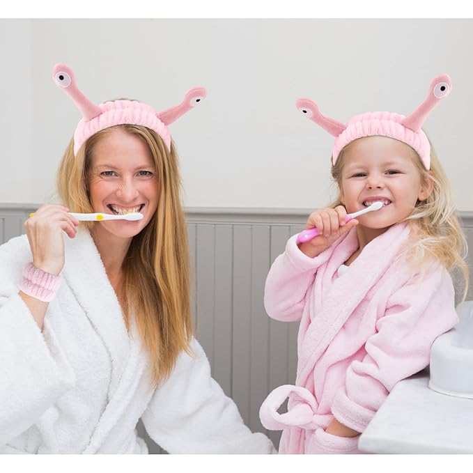 VELSCRUN Spa Headband, Makeup Face Wash Skincare Headbands, 5 Pcs Sponge Get Ready Snail Hairband Facial Wristband Hair Clip Set, Stuff for Teen Girls Women Trendy Hair Accessories Sakura Pink