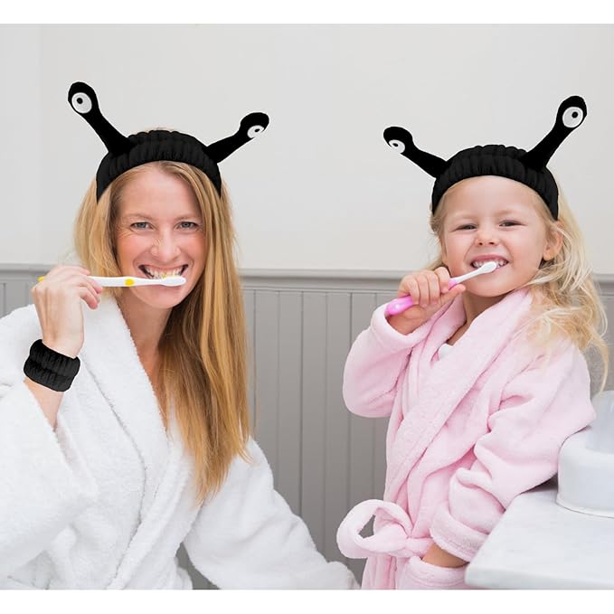 VELSCRUN Spa Headband, Makeup Face Wash Skincare Headbands, 5 Pcs Sponge Get Ready Snail Hairband Facial Wristband Hair Clip Set, Stuff for Teen Girls Women Trendy Hair Accessories Black