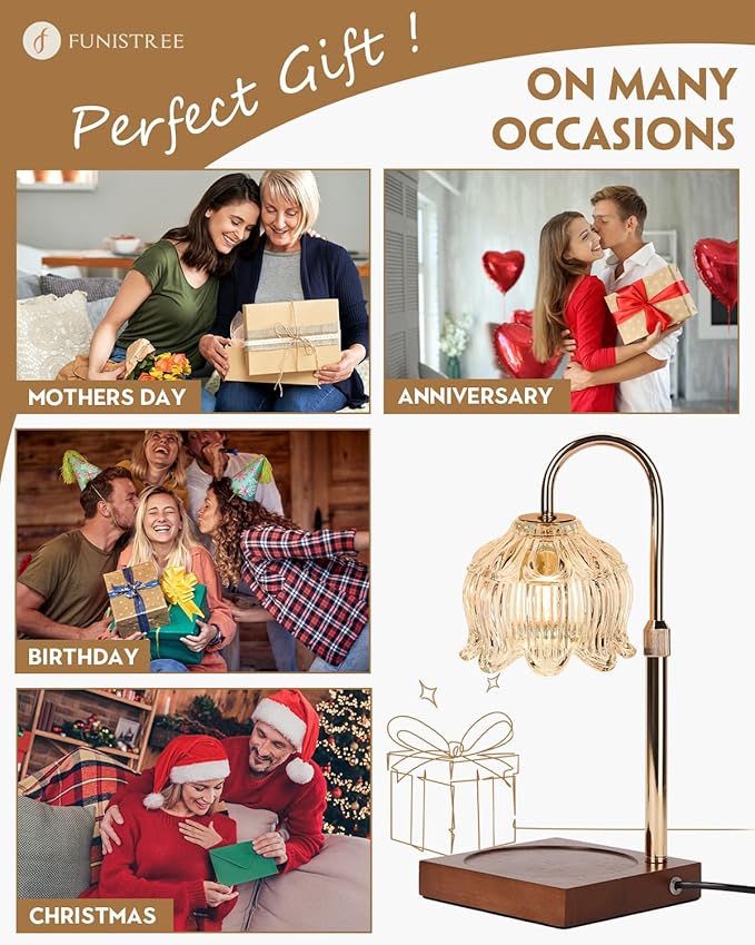 Candle Warmer Lamp with Timer Dimmable, Height Adjustable Birthday Gifts for Women Mom House Warming, Home Decor, Lotus Flower Candle Lamp Warmer 2 Bulbs Inc (Crystals)