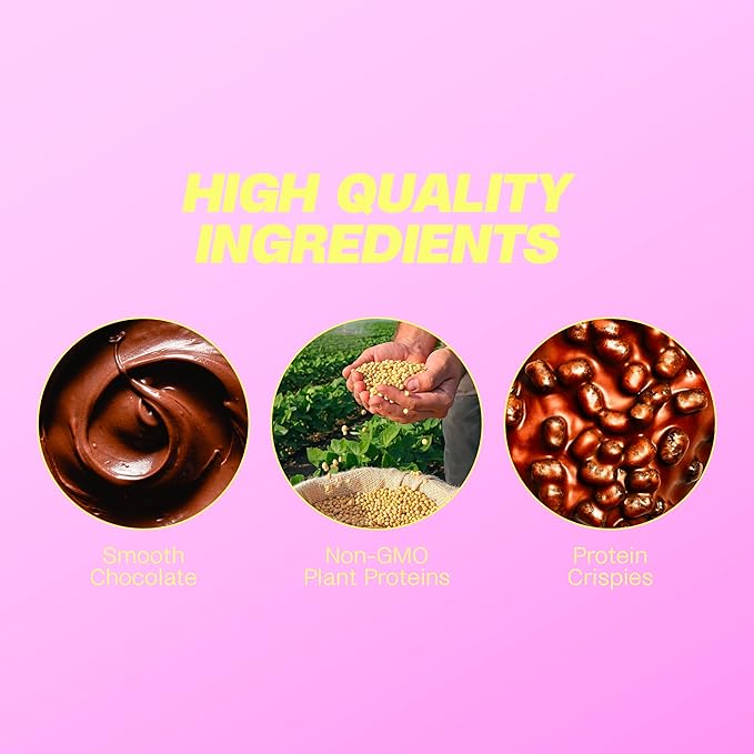 - GUILT-FREE INDULGENCE: Our satisfying, triple-layered treats are an ideal chocolate snack with all the nutritional benefits of a protein bar & zero compromise on taste; great for candy lovers who want to cut back on dairy & sugar