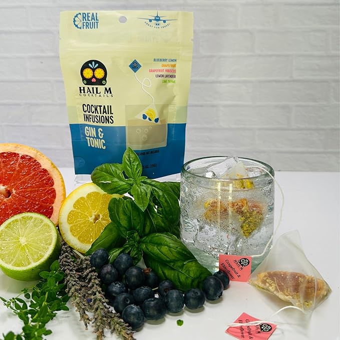 Hail M Gin & Tonic Cocktail Infusion Kit– DIY Botanical Mixer with Blueberry, Hibiscus, Citrus & Lavender – No Sugar or Preservatives – Craft Gin Cocktail Kit – 5 Cocktail Teabags