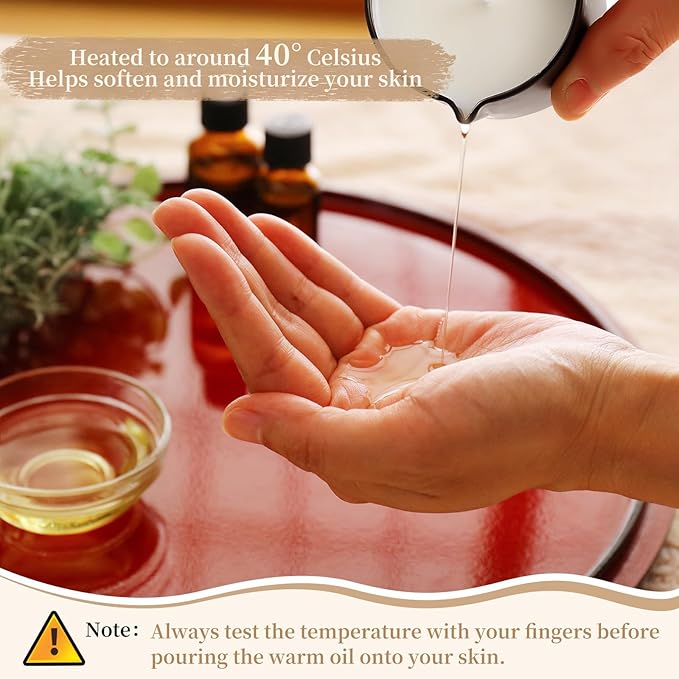 - How To Use: Only need to light the candle for about 30 minutes to melt the wax into oil; Test the temperature with your fingers and pour the warm oil on your skin. Warm massage oil heated to about 40 degrees Celsius will help soften and moisturize your skin