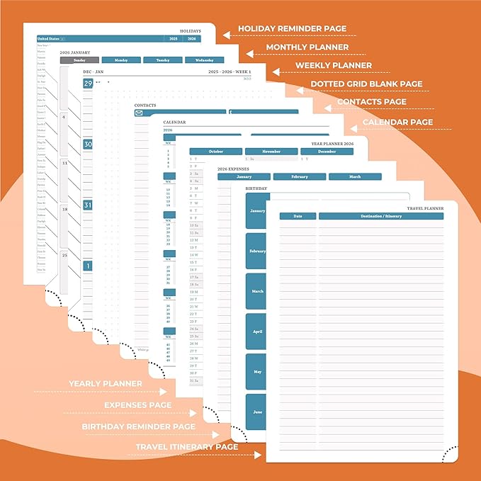 - Thoughtful Design: The monthly tabs on the side of the agendas planner can easy locate the current date; the tear off design and bookmark rope make it easy to flip through the medium planner. The last page of the 2026 college planner has an expanded inner pocket that has a small space for storage of cards