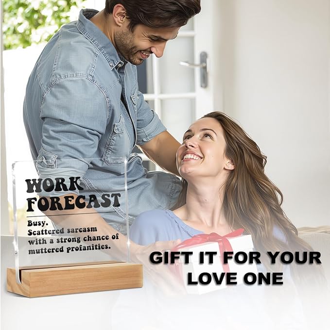 Funny Office Desk Decor Clear Acrylic Sign 4x4 Inch Work Forecast, Humorous Office Cubicle Decor Funny Desk Accessories for Work Table Top Shelf, Gag Gifts for Women Men Manager Coworkers