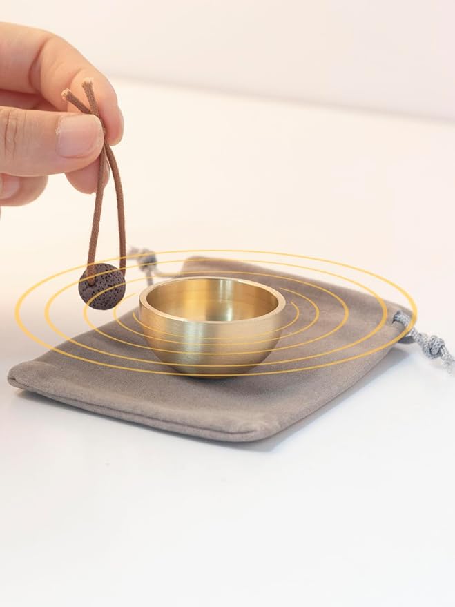 - 【Small BUT Refinement】It's a tiny and portable sound bowl.The bright, clear sound that it makes is quite extraordinary for such a tiny thing. The sound waves emitted by the singing bowl can reduce stress and help you sleep and purify your mind, making your active brain waves calm down, form a vibrating massage and therapeutic effect. The sound and vibrations promote a relaxed state, help yogis open deeper self-regulation, release positive mindset.