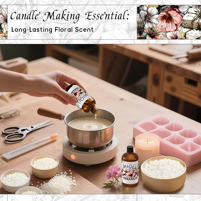HIQILI Geranium Fragrance Oil for Home Diffuser, Relaxation, Essential Oil for Candle & Soap Making, Long-Lasting Scents, Car Freshies - 5.07 Fl Oz
