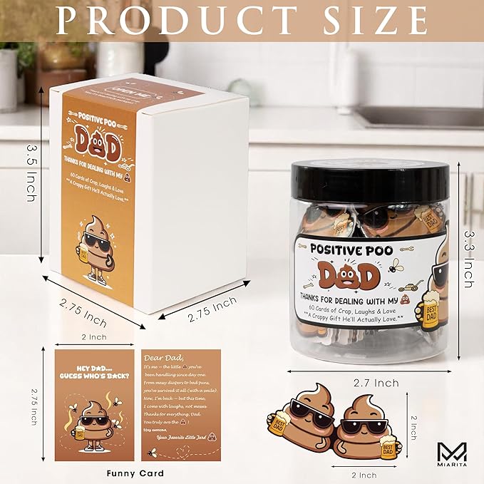 Emotional Support Jar, 60 Positive Cards in Jar, Affirmation Gifts for Women, Birthday Gifts for Girls, Teens (Positive Poo Dad)