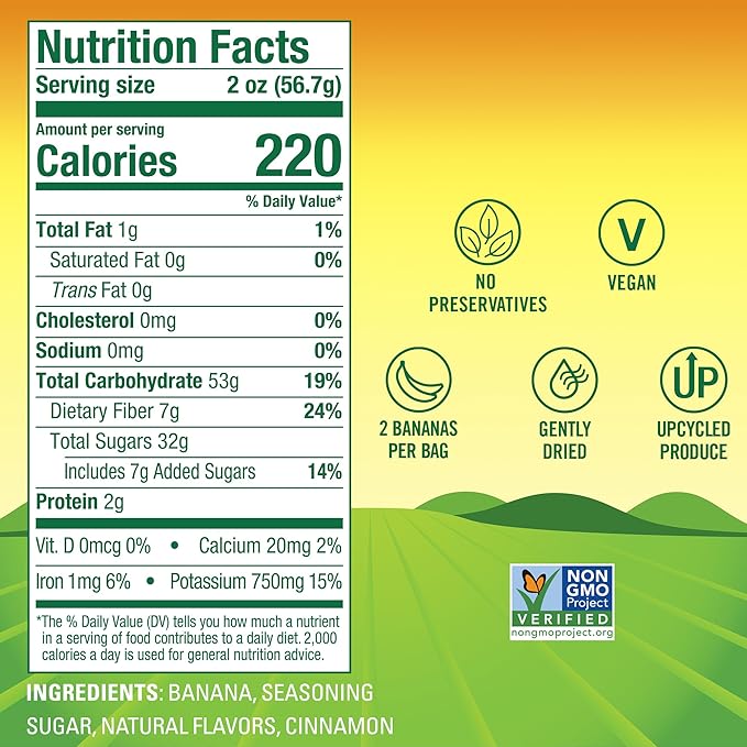 - FROM PERU TO YOU: Enjoy the goodness of 2 whole bananas in every bag! We buy surplus and “ugly” fruit from local farmers, gently dry it, and seal it fresh in just 10 days. We control every step from farm to pouch—reducing food waste, creating good jobs with fair wages, and giving back to the community that makes it all possible. Powered by 100% carbon-free energy.