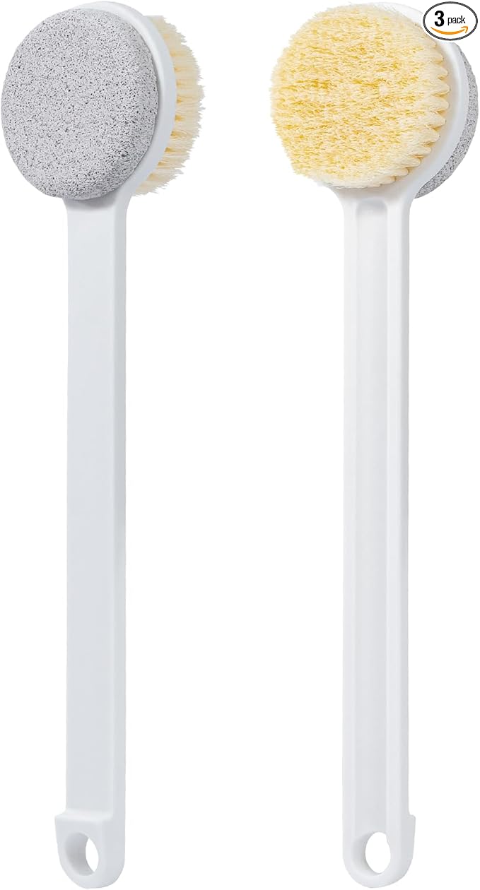 - 2-in-1 Design: This foot scrubber combines a pumice stone and shower brush for deep cleansing and exfoliation of dry, calloused skin