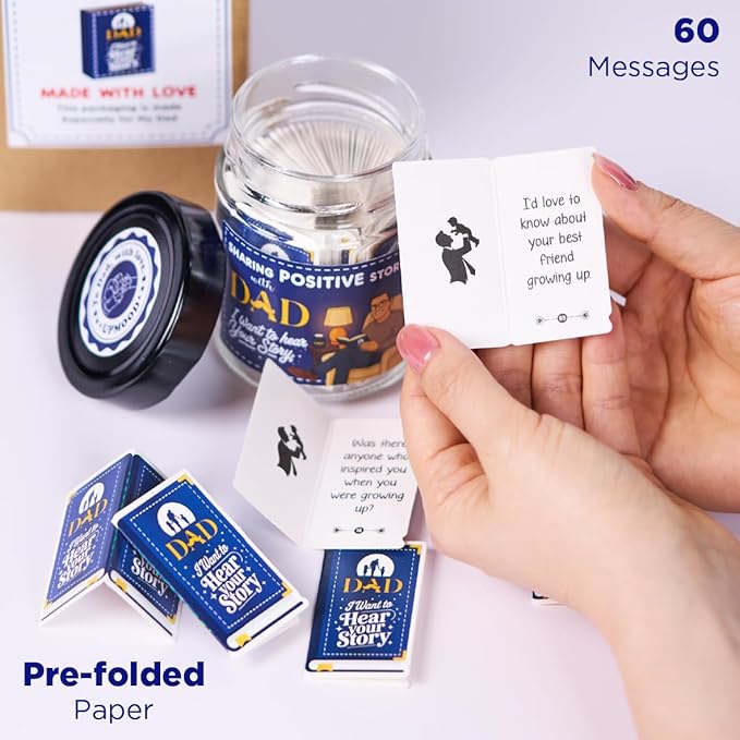 I Want to Hear Your Story, Dad- Sharing Positive Stories Jar - Unique, Sentimental Dad Gifts, Birthday Gift - Thoughtful Journal Prompts for Dad